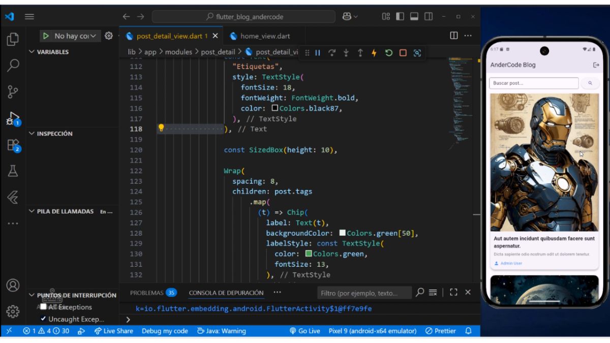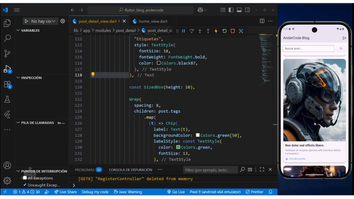 Luego, conectaremos esa API con una app móvil en Flutter, aplicando GetX para el manejo de estado y navegación. La aplicación permitirá listar posts, ver detalles, filtrar por categorías o etiquetas, y trabajar con imágenes almacenadas en el backend. Además, aprenderás a manejar paginación, búsquedas dinámicas e integración completa con la API.