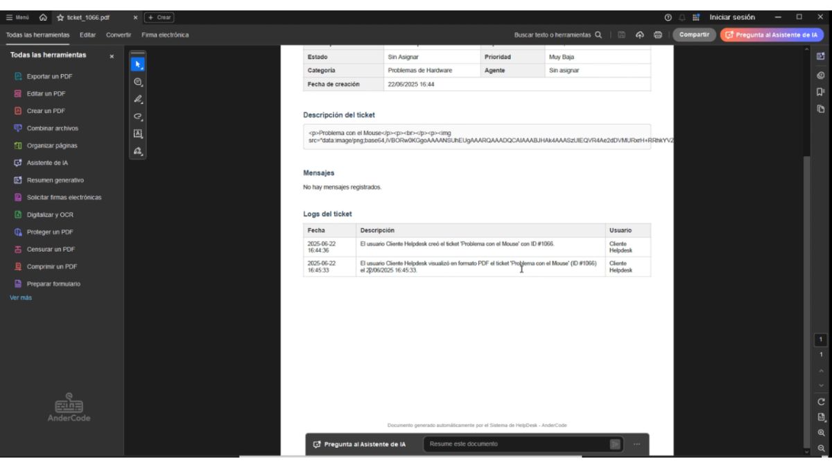 • Generar reportes detallados en PDF